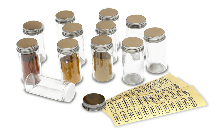 Pour conserver les épices, rien ne vaut les petits pots en verre avec couvercle hermétique. C’est simple, pratique, et ça évite les transferts de saveur. Ces contenants existent en plusieurs tailles : de petits bocaux type mason jusqu’aux lots de 12 bocaux en verre qu’on trouve pour moins de 15 $, ou même à l’unité chez The Container Store ou Bed, Bath & Beyond.